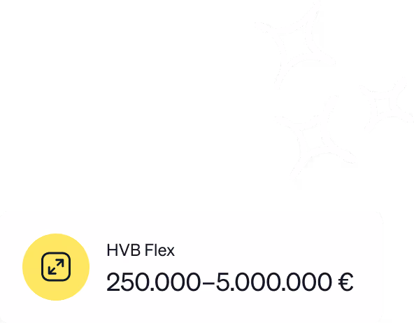 Get between €250,000 and €5,000,000 now with HVB FlexFinanzierung powered by Banxware. Provided by HypoVereinsbank (HVB), applied for completely online and paid out in three days. Flexible financing for SMEs, fully digital at bank conditions.